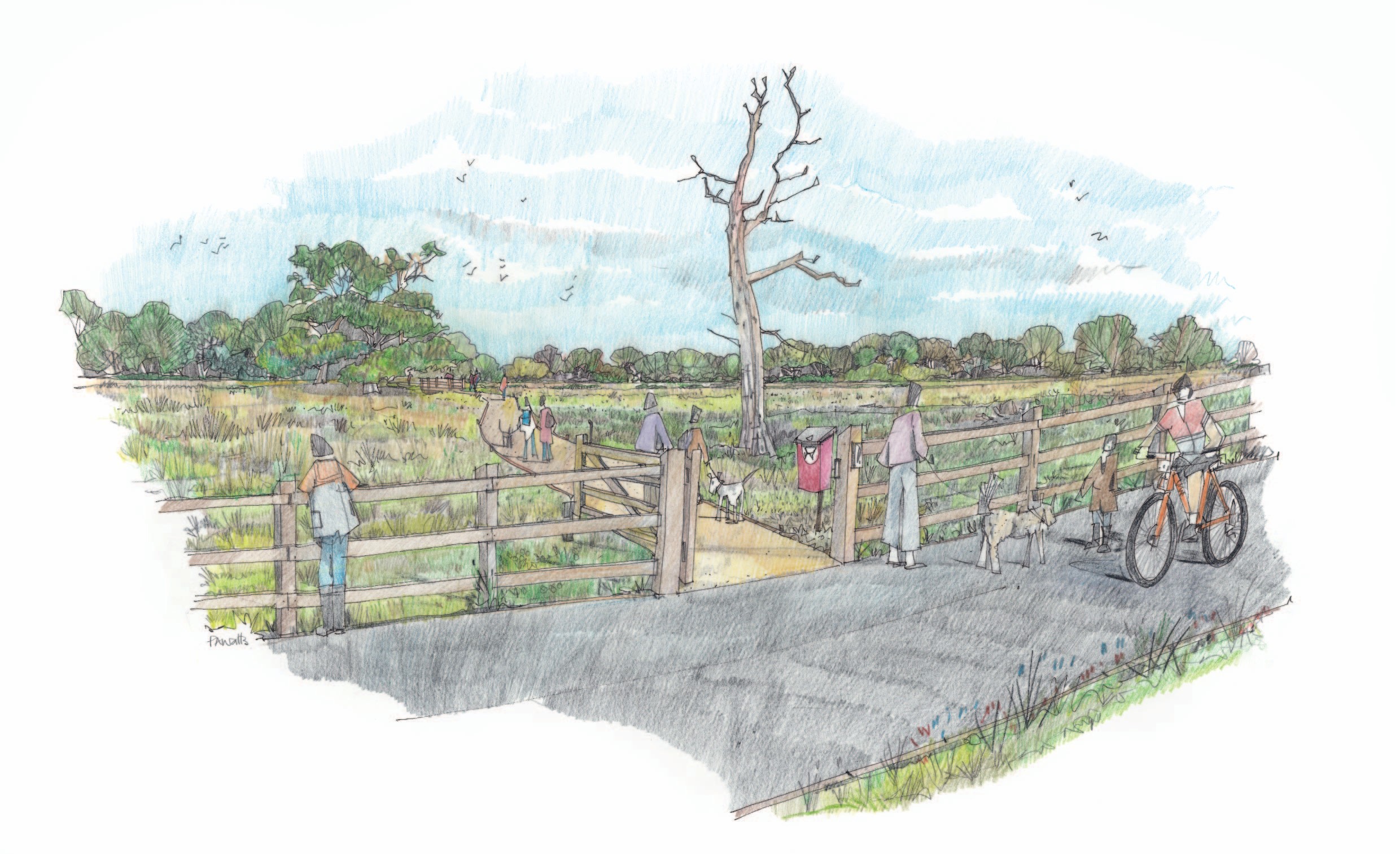 Image caption: Clyst Meadows Country Park sketch